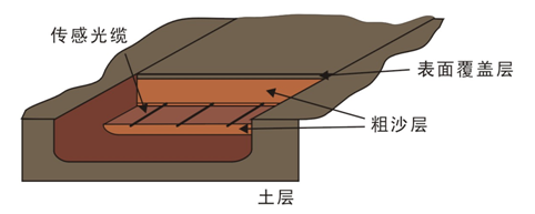 Surface, every 50cm with steel wire clip. After laying the sensing optical cable, cover it with a layer of coarse sand with a thickness of 10cm, and finally evenly cover its surface with a layer of 1cm surface medium (fine sand or loose and dry soil).