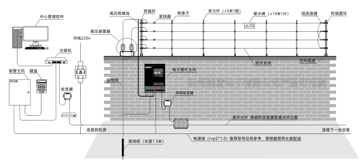 DF600脈沖電子圍欄+DF600A電子圍欄管理主機(jī)+RD-6000中心管理軟件+視頻監(jiān)控