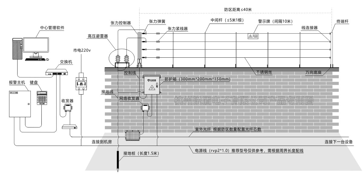 DF200張力圍欄+RD-3110報(bào)警主機(jī)+RD-6000中心管理軟件+視頻監(jiān)控